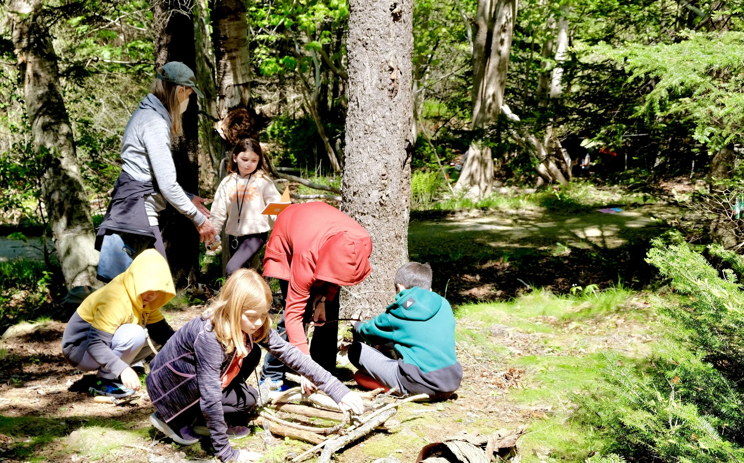 “Inspired by Andy Goldsworthy: ‘New Views’ Fourth+Fifth Grades and ’Animal Abodes’ Second+Third Grades” Vinalhaven School, Vinalhaven, ME